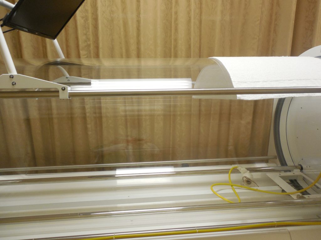 | Spacious and clear acrylic cylinder allows patient to view TV/Video system | |